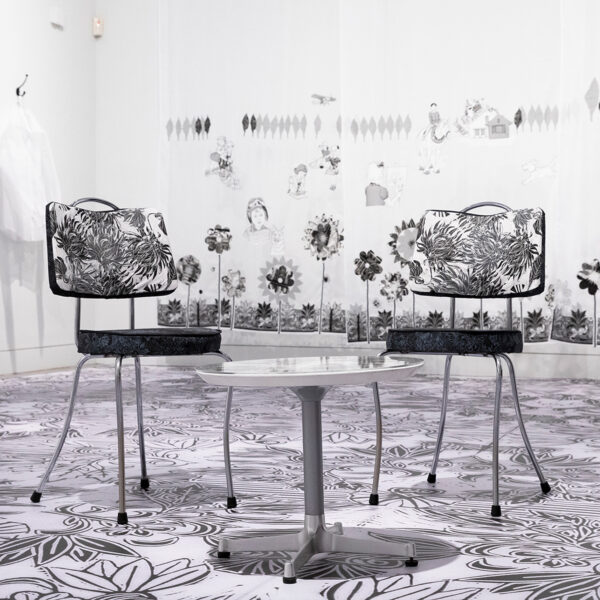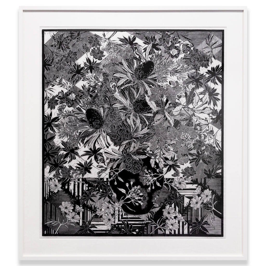 “My artwork explores themes related to domestic interiors and gardens. The enforced period of lockdown in 2021, and the seemingly never-ending wet weather that followed well into 2022 covered the period I had set aside to make work for this project. Rather than seeing this time of containment an obstacle, I sought to take the opportunity to develop a new way of informing my practice. Until now, drawings made in direct response to place have been the foundation stone of my image making.