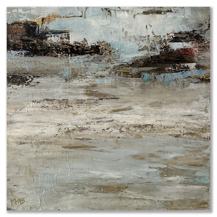 My practice is rooted in an obsession with the elemental — the texture and solidity of rocks and boulders, the shifting hues of Australia’s tumultuous skies, the movement of water both turbulent and still, and the traces left behind in intricate natural markings. These motifs are not rendered literally, but transformed through a semi-abstract language where the seen and the felt intertwine.